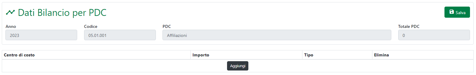 In questa sezione si potrà modificare e visualizzare i dati del bilancio preventivo in questione. Cliccando sul pulsante “Salva” si potrà salvare correttamente le modifiche effettuate.