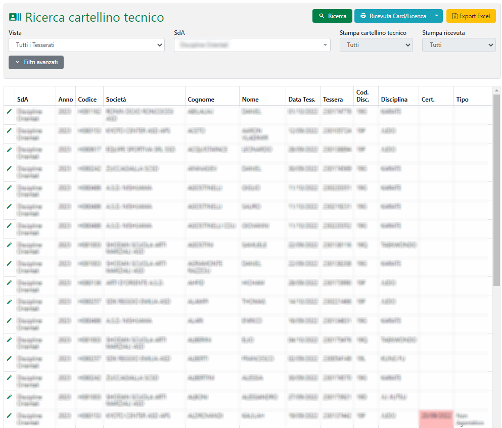 Cliccando sul pulsante “Ricevuta Card/Licenza” è possibile effettuare la stampa massiva di tutti i cartellini ricercati all’interno di un file PDF.