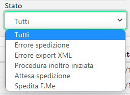 Tra i filtri per la ricerca è presente una dropdown “Stato” in cui potrai selezionare la voce desiderata.