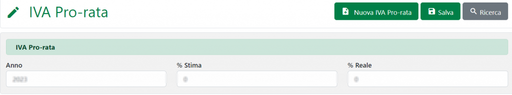 Cliccando il pulsante, sarà possibile creare una nuova Iva Pro-Rata.