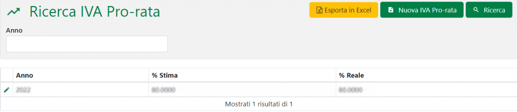 All’interno di questa sezione sarà possibile effettuare la ricerca dell’Iva Pro-Rata.