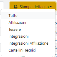 Cliccando sul pulsante “Stampa dettaglio” è possibile creare un PDF stampabile contenente dati filtrati a seconda del tipo di selezione.