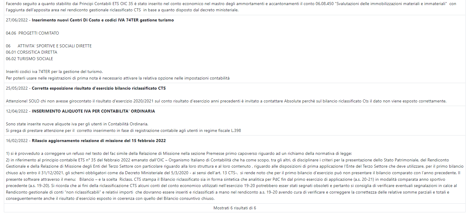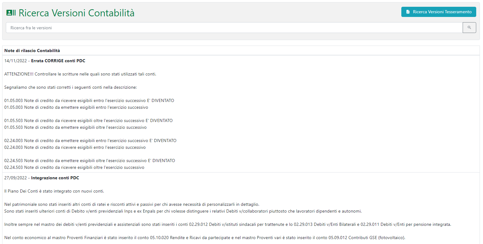 In questa sezione si potrà effettuare la ricerca delle versioni della contabilità attraverso l’input di testo sottostante. Il risultato verrà visualizzato sotto forma di note.
