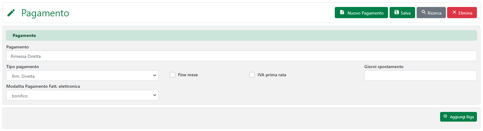Cliccando sul pulsante “Aggiungi Riga” si potrà aggiungere un record.