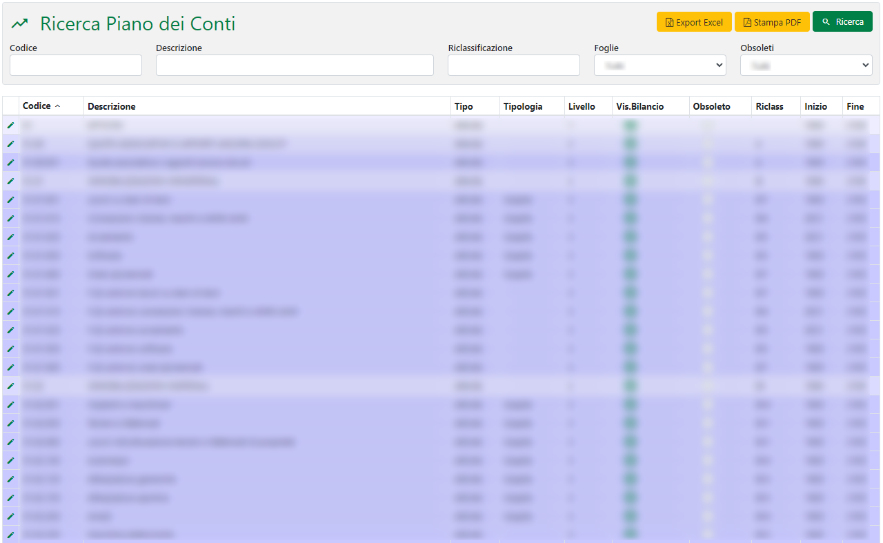 Cliccando su uno di questi pulsanti è possibile effettuare un export dei dati ricercati all’interno di un file Excel o in un PDF stampabile.