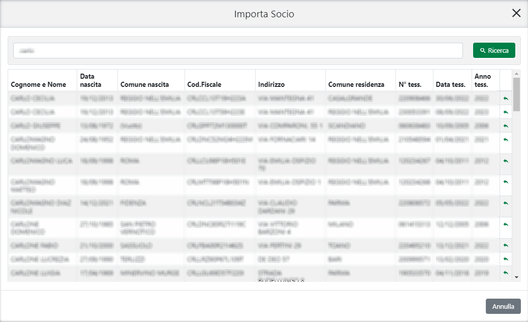 Facendo click su questa opzione, l’utente socio, potrà importare i propri dati anagrafici.