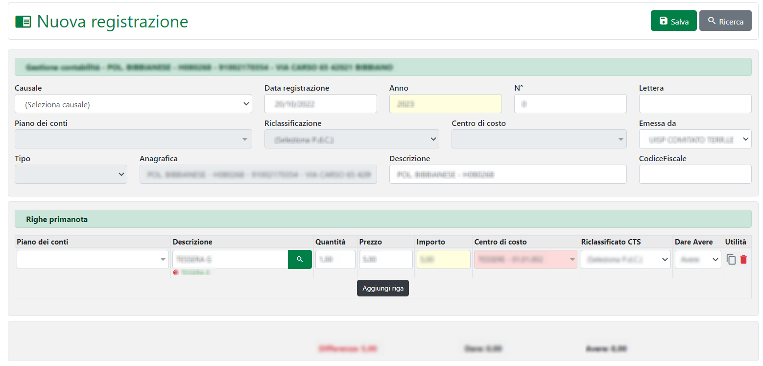 In questa sezione puoi creare una nuova ricevuta da emettere. Cliccando sul pulsante “Salva” si potrà aggiungere correttamente una nuova registrazione.