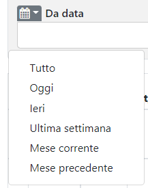 Cliccando sulla dropdown “Data” si potrà selezionare la voce desiderata.